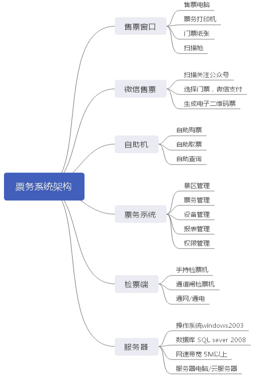 4. 票務(wù)系統(tǒng):現(xiàn)有標(biāo)準(zhǔn)版本,網(wǎng)絡(luò)BS架構(gòu)模式。維護(hù)簡單