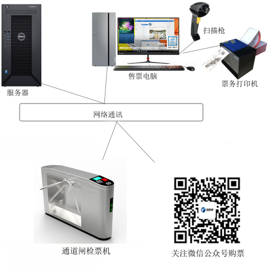 2. 售票端:采用人工窗口售票和微信售票方式,窗口售賣紙質(zhì)二維碼門票,微信是生成電子二維碼門票